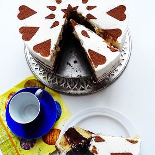 Собираем торт: Торт будем собирать в форме (купите кондитерскую бортовую ленту для формы, так легче извлекать уже пропитавшийся торт) Можно собрать в виде шахматки (гляньте в сети как это сделать лучше видео, словами так не опишешь) либо просто чередуйте белый и шоколадные коржи. Пропитываем их сиропом из ананаса (мякоть не трогаем она для верха торта для панна коты) и смазываем кремом. Крем предварительно надо разделить на 3 части - треть для панна коты